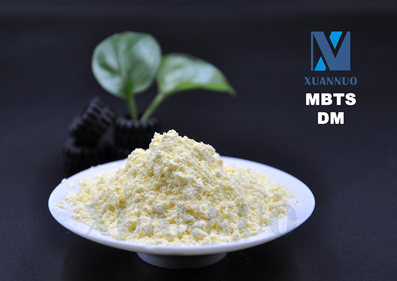 2,2'-二硫代雙(苯并噻唑)(MBTS,DM)類白色或淡黃色粉末,略帶苦味。溶于氯仿,部分溶于苯和乙醇、四氯化碳,不溶于汽油、水、乙酸乙酯和堿。儲(chǔ)存穩(wěn)定。MBTS 在 NR 和 SR 中的硫化速度中等,硫化特性平緩,可用于大多數(shù)普通橡膠。它主要用于制造輪胎、內(nèi)胎、膠帶、膠鞋和一般工業(yè)產(chǎn)品。